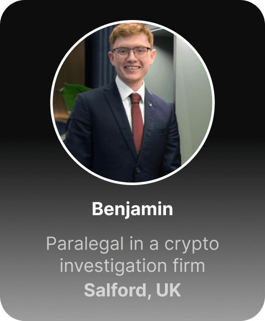 Interview with a paralegal and crypto scam investigators to identify the admissibility threshold for reports.