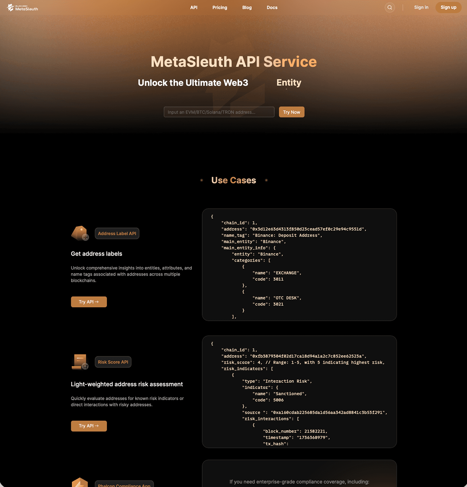 We will replicate researched methods that achieved 99% accuracy in linking hidden transactions. We will run a proof-of-concept using MetaSleuth's address label API and risk score API against known case addresses to measure entity label accuracy, and compare it against competing providers (Chainalysis, Elliptic, TRM Labs). We will fine tune our model until we can obtain a clear edge.